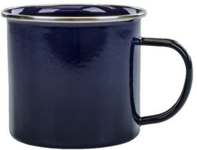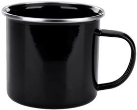 This 16oz Enamel Mug is crafted from stainless steel with a glossy enamel coating and a rolled rim, offering durability and a retro aesthetic. Ideal for both hot and cold beverages.