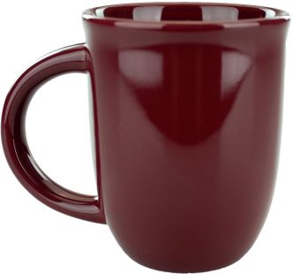 The 14oz Satin Finish Ceramic Mug features a smooth, matte exterior in rich colorways like Black, Red, Ocean Blue, and more. Its tall, tapered shape and large handle provide comfort and practicality